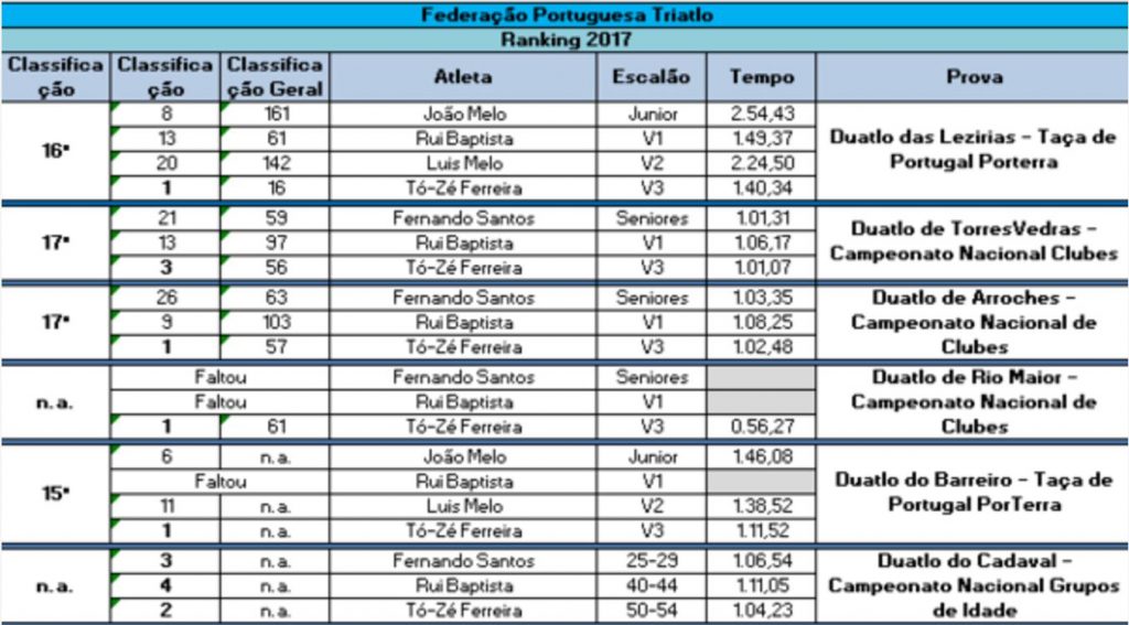 Destaque ainda para o brilhante desempenho dos nossos Atletas no campeonato Nacional de Grupos de Idade, com Tó-Zé Ferreira a conseguir o 2º lugar no seu escalão, Fernando Santos a estrear-se nos Pódios numa classe extremamente competitiva com um brilhante 3º lugar e Rui Baptista a uma unha de subir ao Pódio, mas uma não menos brilhante 4ª posição, a fechar com Chave D’Ouro esta séria de provas da federação de Triatlo de Portugal.